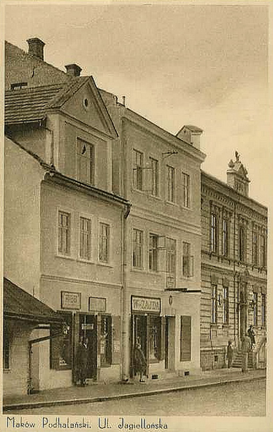 ul. 3 Maja (Jagiellońska) Maków Podhalański; רחוב 3 במאי ( קודם - רחוב יגלונסקה) החנות השמאלית היא המספרה של אבא שלי .