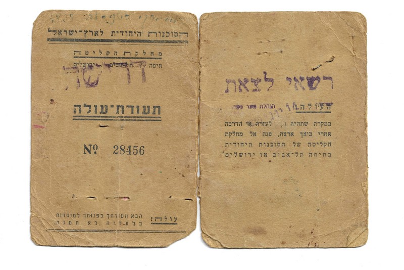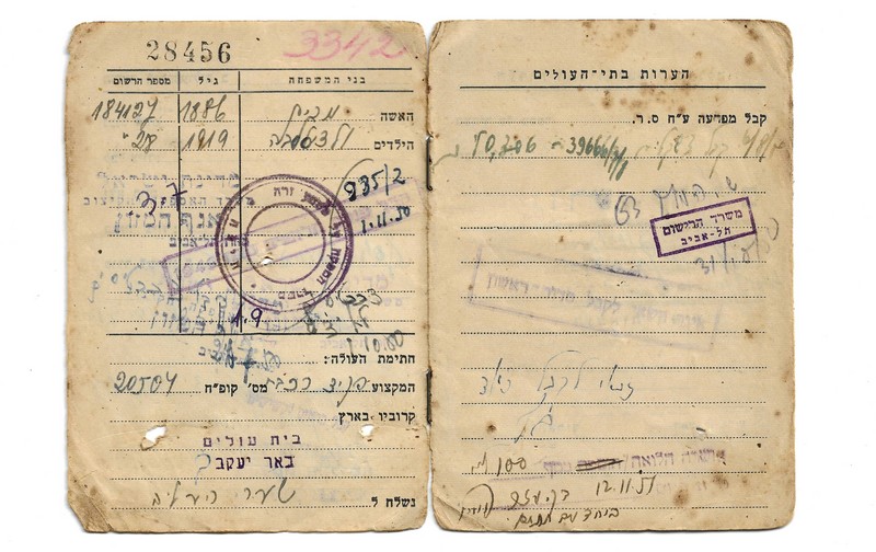 תעודת עולה של הורי אשתי לישראל ב-1950